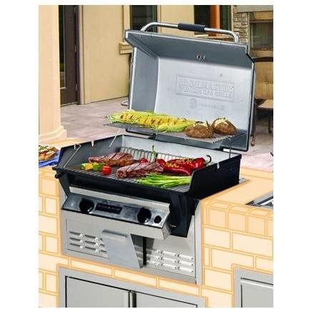 The Broilmaster R3B Infrared Combination Grill, with its two burner styles, 3-level adjustable cooking grids, 3-position stainless lid stop, combines the latest infrared grilling technology with conventional gas grilling under one hooD. The result is exceptional cooking versatility. Sear steaks on the infrared while you grill vegetables over the stainless steel tube burner. The 20,000 BTU infrared burner instantly vaporizes drippings for that great charbroiled taste! The 20,000 BTU stainless steel tube burner in conjunction with Broilmasters Charmaster ceramic briquettes provide the perfect balance for the avid griller. Grill body is made from heavy duty cast aluminum with a stainless steel control panel. The two piece stainless steel rod cooking grids supply a generous 442 sq inches of direct cooking surface, and the stainless steel retract-a-rack warming rack adds an additional 253 sq inches, for a total of 695 sq inches of cooking surface. The multi-position stainless steel lid stop allows you to raise and lower the hood for maximum control over heat and smoke. Unit features an electronic ignition for year round instant lighting on one AA battery and a degree calibrated analog temperature gauge that reads from 0-600 degrees Fahrenheit. Built in trim kit is included. Overall Dimensions including frame (in inches): 14 3/8 H x 28 15/16 W x 16 D. Cutout Dimensions (in inches): 14 H x 26 13/16 W x 15 13/16 D. Unit includes stainless steel natural gas flex connector. This unit is set up for Natural Gas only!