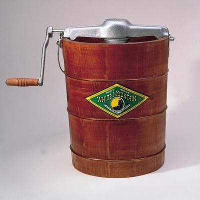 4 Quart Hand Crank Ice Cream Maker...Many summers ago, ice-cream socials centered around families getting together, each cranking out its favorite ice cream for all to enjoy. You can still carry on that tradition with this authentic-looking Ice Cream Maker with Crank. The White Mountain Freezer company, which crafts these Makers, has been in business for over 145 years and knows all about making ice cream the good old-fashioned way. In fact, they've developed an exclusive method of mixing the ice cream - a triple-motion gear action that properly mixes and beats the entire cream contents of the canister, resulting in the smoothest, creamiest ice cream in just 20-30 minutes. The stainless-steel canister is designed for faster freezing, and the cast-iron dasher and blades will never warp out of shape. The freezer tub is made of New England pine that has been sealed, stained, lacquered and bound with strong galvanized hoops. Makes 4 quarts of ice cream, frozen yogurt, and other frozen confections; Hand cranking provides fun for the entire family; Stainless-steel freezer can and dasher inside wooden tub; Freezer can and dasher are dishwasher-safe.